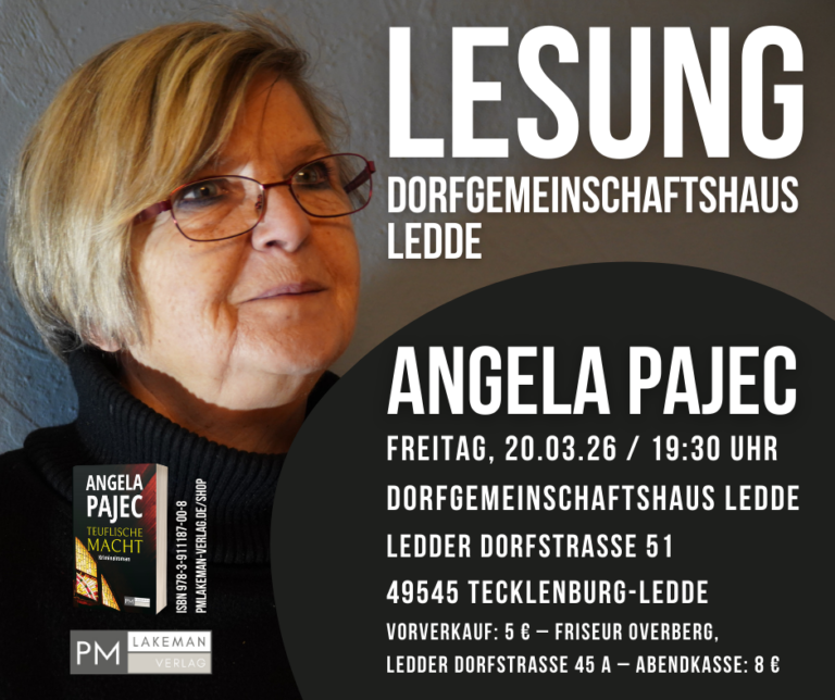 PMLakeman-Verlag Literatur mit Leidenschaft Neuerscheinungen (für weitere Info auf das Bild klicken) Neuerscheinung in Vorbereitung – erscheint Mai 2026 Soundtrack einer Stadt von Mathias Aicher, Christina Bacher und Michael Halberstadt im PMLakeman-Shop vorbestellen Neuerscheinung – Die Fortsetzung von "Sommerkinder" Herbsthimmel von Regina Pietsch im PMLakeman-Shop kaufen Neuerscheinung – Lisa Schneiders neuer Fall! Die flotte Lotte von Ingrid Reidel im PMLakeman-Shop kaufen Familiensaga aus dem Allgäu Sommerkinder von Regina Pietsch im PMLakeman-Shop kaufen Dem Leben die Hoffnung abtrotzen Manchmal das Glück von Ulrike Sabine Maier im PMLakeman-Shop kaufen Wie wäre es mit einer neuen Idee? Im Auftrag der sichtbaren Gefühle von Frank Schelling im PMLakeman-Shop kaufen Authentisch. Ermutigend. Und voller Hoffnung. In mir ein ganzes Universum von Lea Zander im PMLakeman-Shop kaufen Aktuelles Verlagsprogramm 02/25 runterladen (PDF, 11 MB) Aktuelles Making-of:Wie "Die flotte Lotte" wirklich entstand ... Zum Bloartikel Ab sofort lieferbar – "Herbsthimmel", die lang erwartete Fortsetzung von "Sommerkinder" Mehr erfahren Frank Schellings neuer Roman Mehr erfahren Leseproben Mehr erfahren Rund um die Uhr für euch da – unser Online-Shop! Mehr erfahren Programm Alle Bücher Stories Kurzgeschichten PMLakeman-Verlag Über uns
